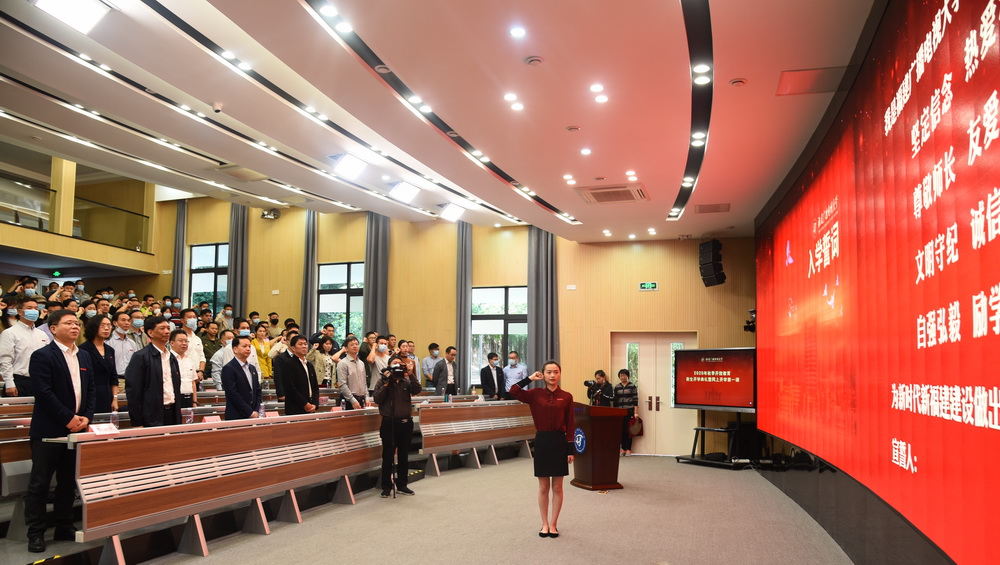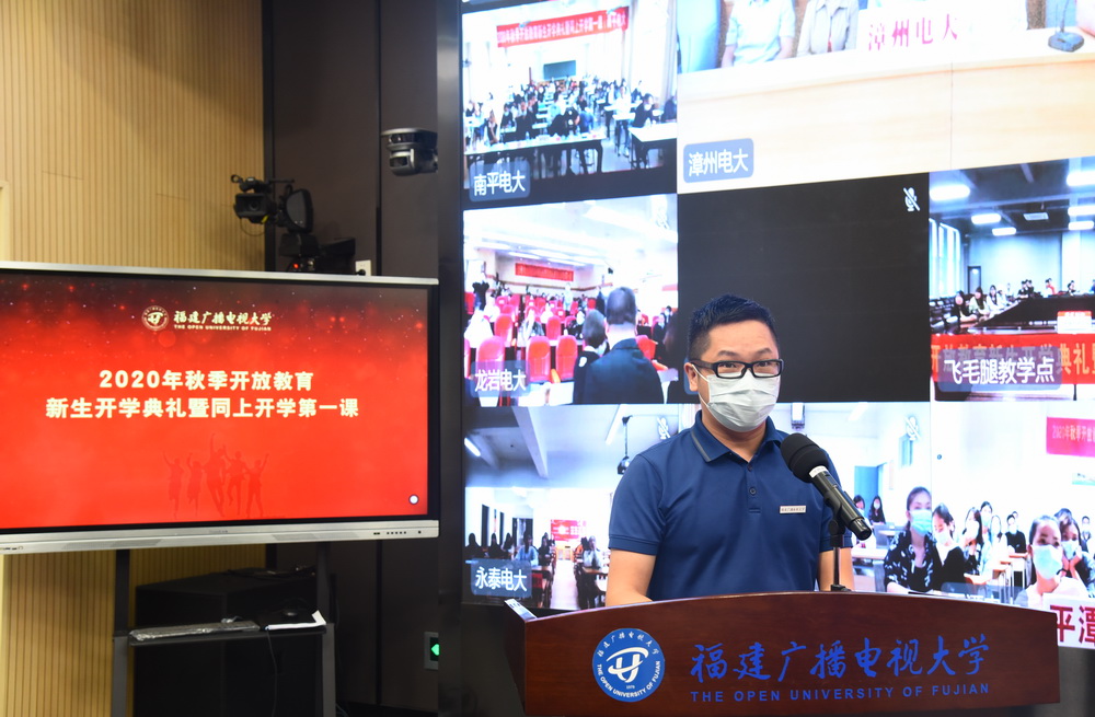 在嘹亮雄壮的国歌声中,福建广播电视大学2020年秋季开放教育新生开学典礼暨同上开学第一课正式启幕。各地电大领导分别在当地为2019年度国家开放大学奖学金、“希望的田野”奖学金获奖代表颁发了获奖证书。本科新生代表、专科新生代表、在校生代表和教师代表在当地电大发言。各地电大校领导为新生代表佩带校徽、颁发学生证,新生同步进行了入学宣誓。